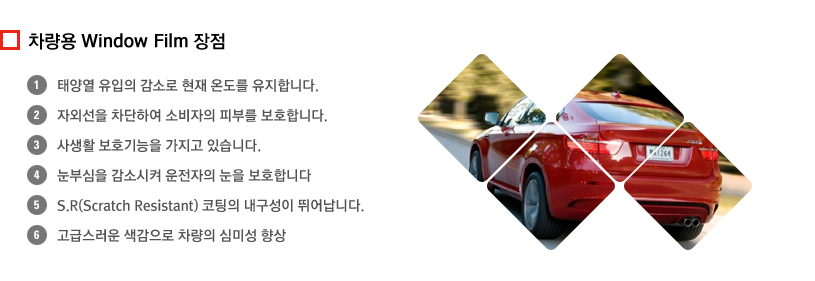 À¯ÇØÇÑ Àڿܼ±ÀÇ Â÷´ÜºñÀ²À» ÀǹÌ, ¿îÀüÀÚÀÇ ´«°ú ÇǺθ¦ º¸È£Çϸç Â÷·®³»ºÎÀÇ º¯¼ºÀ» ÃÖ¼ÒÇÏ´Â ¿ªÇÒÀ» ÇÑ´Ù. Â÷·®¿ë SKC À©µµ¿ìÇʸ§ ÀüÁ¦Ç°ÀÌ Àڿܼ± 99%ÀÌ»ó Â÷´Ü °¡´É